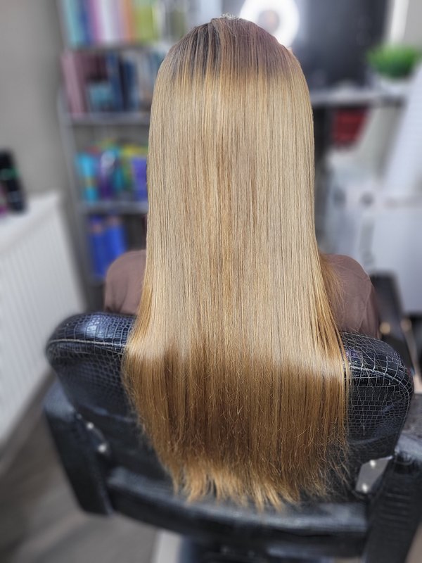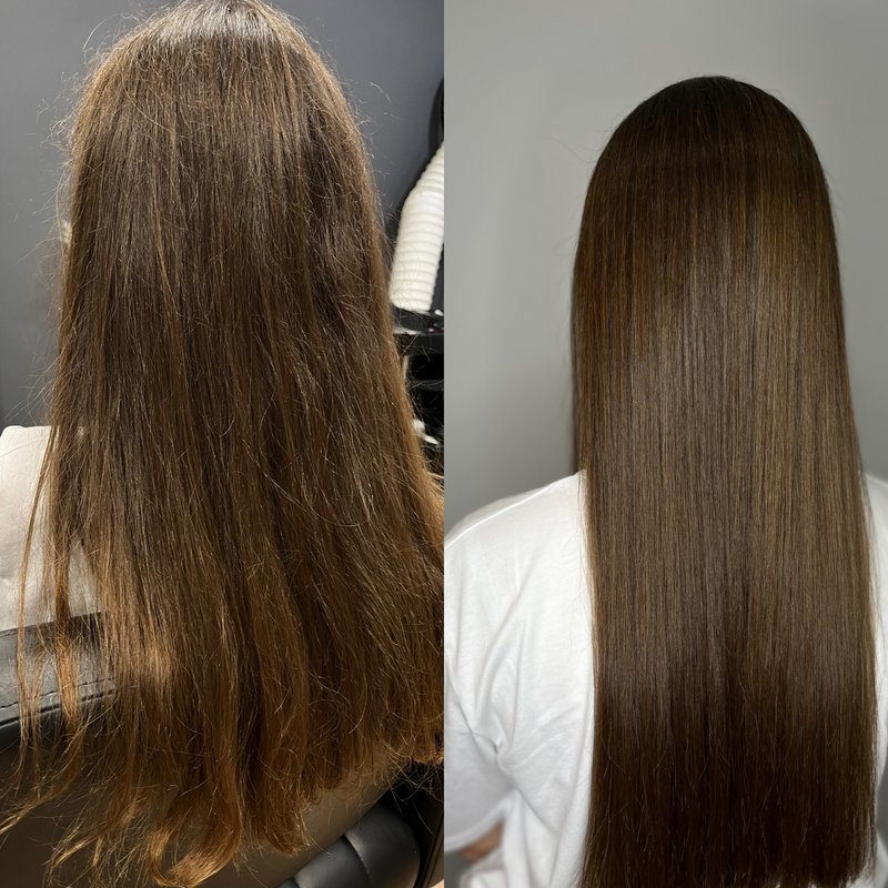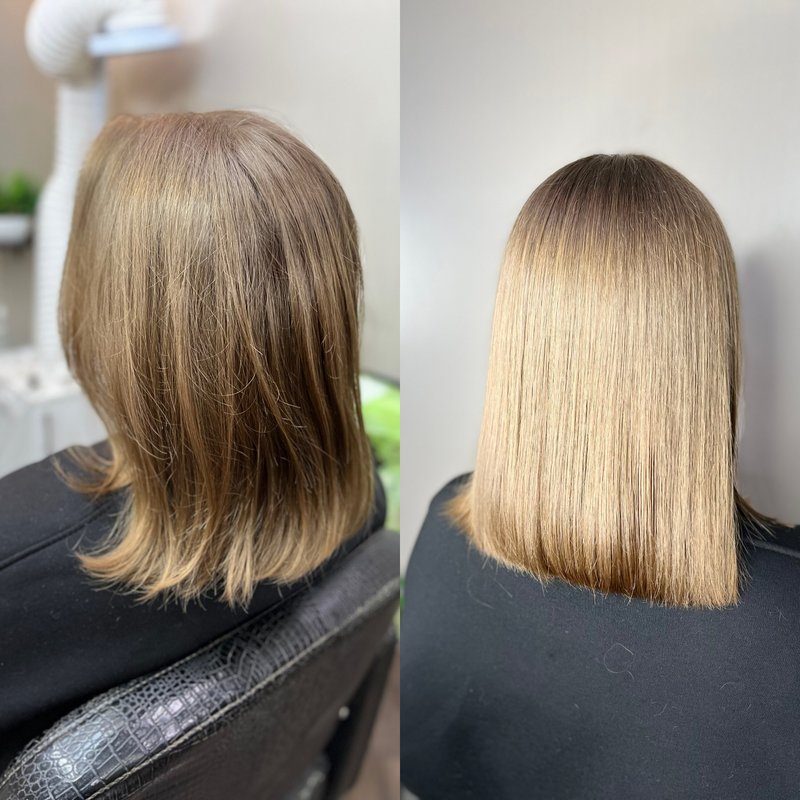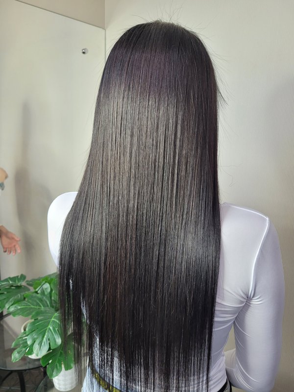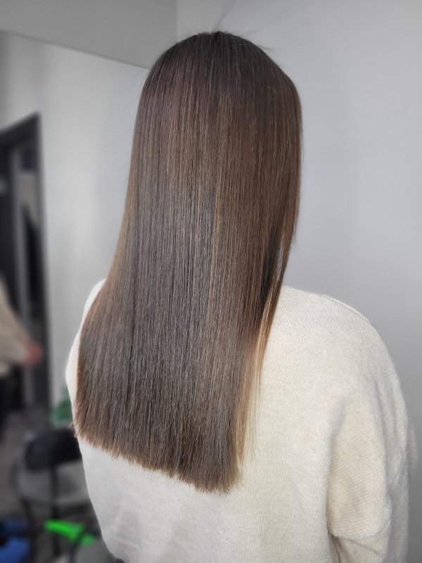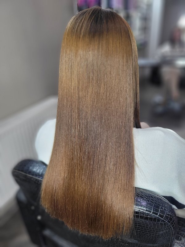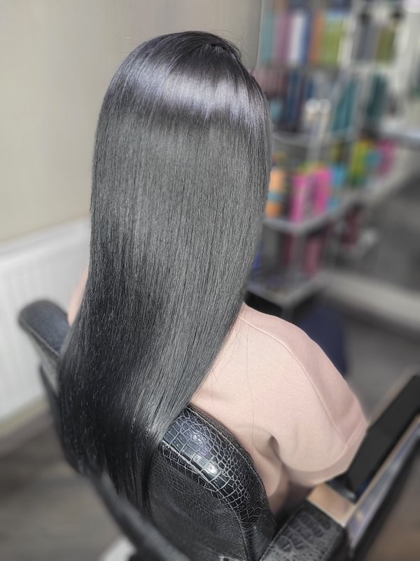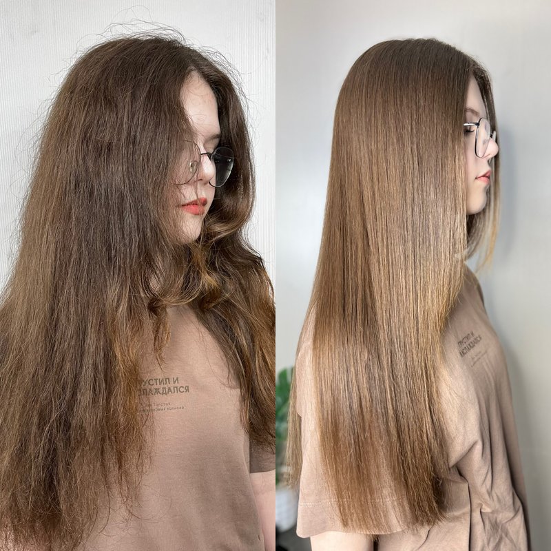 Второй раз делаю кератиновое выпрямление волос у Ольги, очень довольна результатом.