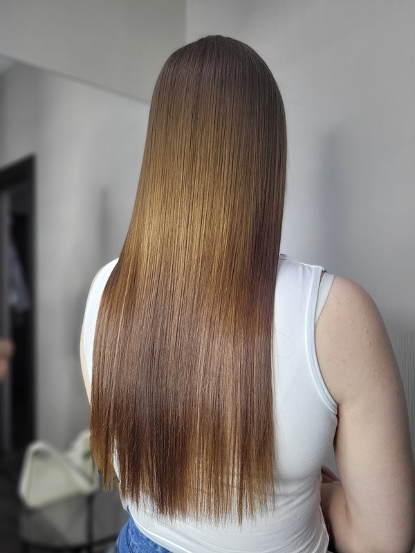 Преимущества: Делала кератиновое выпрямление волос, очень понравилось, волосы стали красивые, блестящие. Спасибо большое мастеру. Приду еще:))).